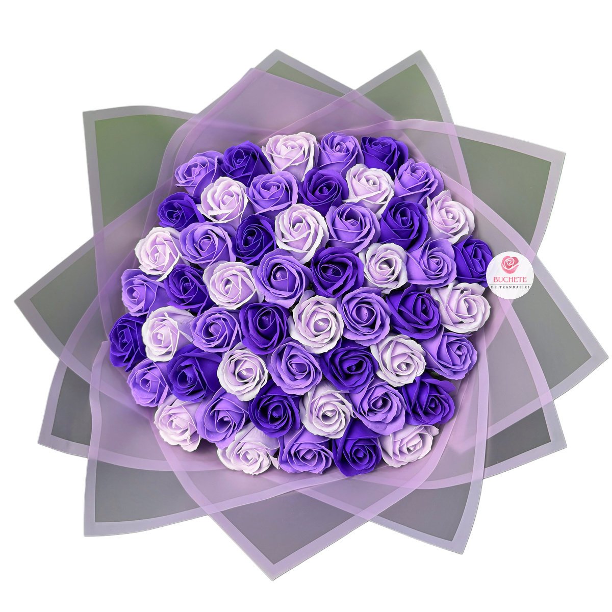 Buchet de flori Mov 51 trandafiri din sapun, parfumati