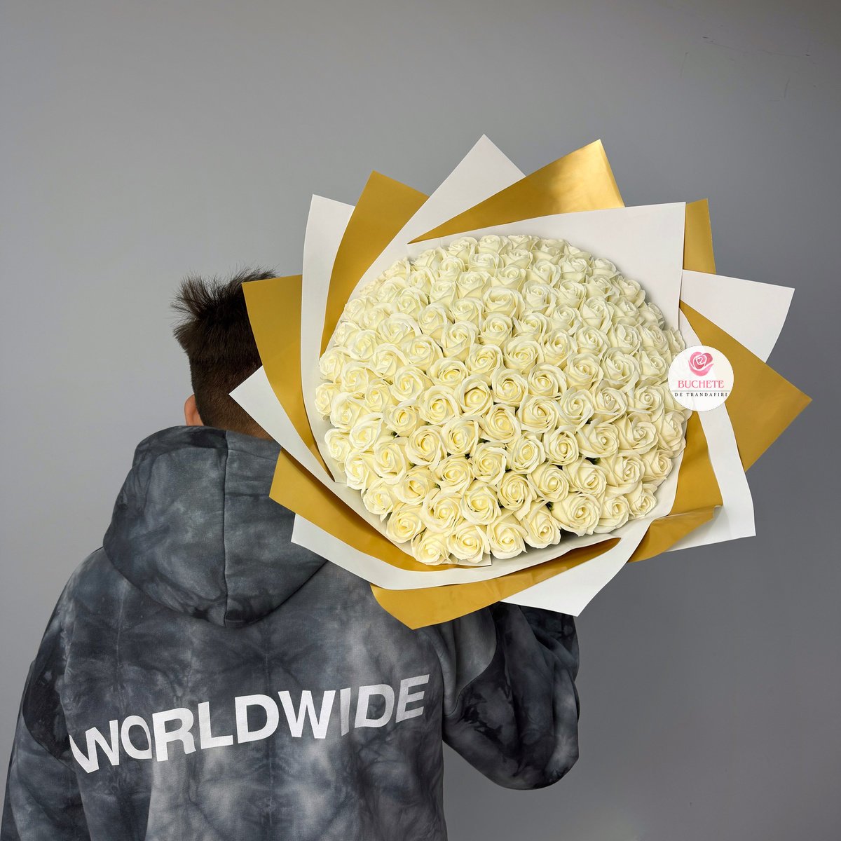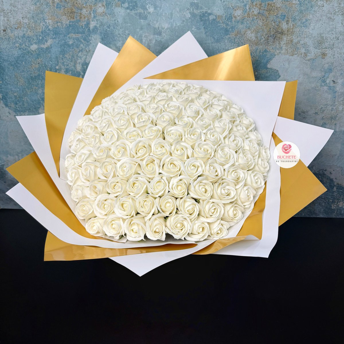 Buchet de flori Trandafiri 101 Alb, Premium, parfumati, lucrat manual