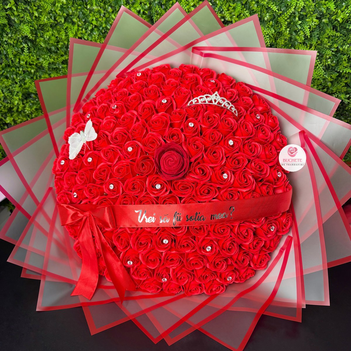 Buchet cerere in casatorie cu 101 Trandafiri rosii din sapun