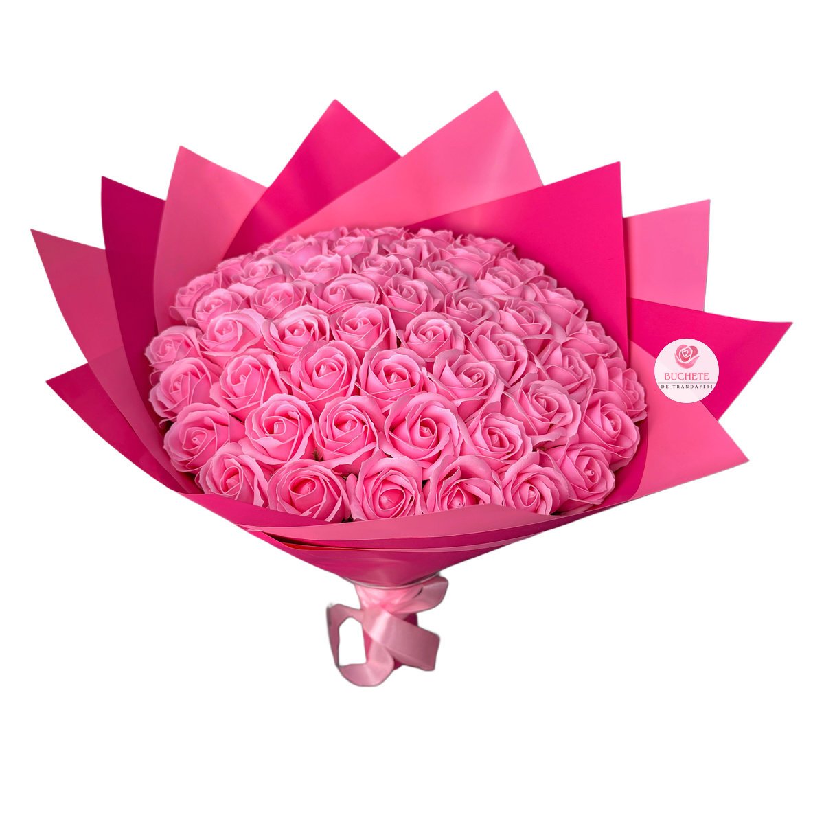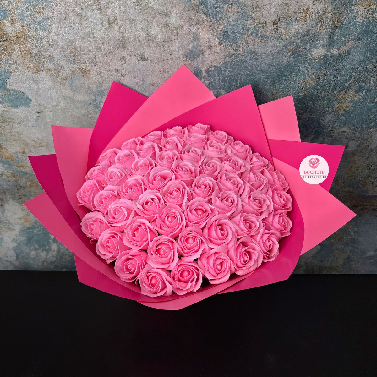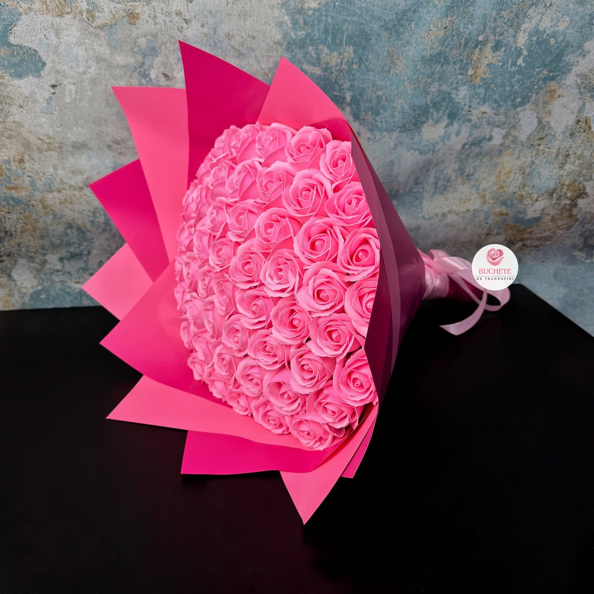 Buchet Trandafiri din sapun Roz este un aranjament premium, compus din 51 de fire, creat pentru cei care cauta un cadou rafinat si practic: iubita, sotia, mama, o colega apreciata sau o persoana draga care iubeste detaliile. Trandafirii au un aspect realist, o prezenta bogata si se potrivesc perfect cand vrei sa marchezi un moment special fara grija intretinerii zilnice. Este o alegere mai practica decat florile naturale atunci cand cadoul trebuie sa arate impecabil mai mult timp, inclusiv in spatii calde sau in birou.